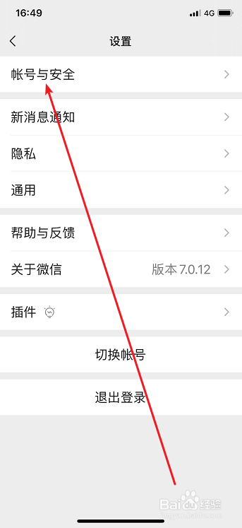 点击【账号与平安】